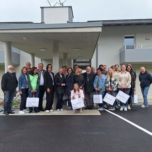 Grund zu feiern, gab es auch in Feldkirchen, wo neun barrierefreie, geförderte Wohnungen und ein Geschäftslokal feierlich an die neuen Bewohnerinnen und Bewohner übergeben wurden. Anwesend waren dabei unter anderem Vorstandsobfrau Gerlinde Peyker, Bürgermeister Martin Treffner sowie Pfarrer Johannes Staudacher. Die moderne Anlage bietet sowohl Familien, Singles als auch Seniorinnen und Senioren komfortables, alltagsnahes Wohnen.