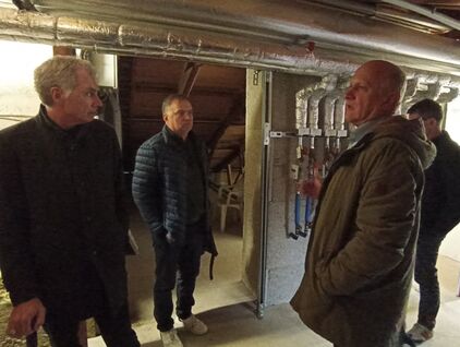 Eine lehrreiche Exkursion führte zu innovativen Dekarbonisierungsprojekten der Sozialbau Gruppe: In einem Wohnhaus in der Miesbachgasse besichtigte man den Prototyp der „Gemeinschaftstherme“, der erfolgreiche Ansatz der zweistufigen Dekarbonisierung des Heizungssystems: Zuerst Zentralisierung des über Kamine an ein gemeinsames Heizhaus im Dachboden, anschließend Tausch von Erdgas auf Wärmepumpe. Dieses Konzept wurde bei der Sozialbau strategisch über den Gesamtbestand ausgerollt, hat u.a. den ÖGUT-Umweltpreis 2022 erhalten und wird nun erweitert um liegenschaftsübergreifende Lösungen (Anergienetze).