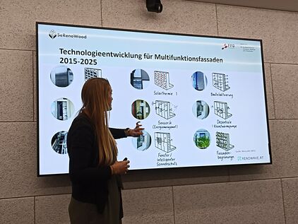 Im Programm des Dekarbonisierungs-Workshops folgten Impulsvorträge zu aktuellen Forschungsprojekten, die einen spannenden Austausch zwischen Wissenschaft und Praxis einleiteten. Vorgestellt wurden das Branchenforschungsprojekt GBV-Deka über Portfoliomanagement im gemeinnützigen Wohnbau (Tobias Weiss), SERENOWOOD über serielle Sanierung mit Holzmodulen (Cornelia Ninaus) sowie der geplante Förderrechner von klimaaktiv Gebäude (Felix Wimmer).