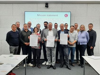 Bei einem zweitägigen Dekarbonisierungs-Workshop im November 2025 in Wien haben die Dekarbonisierungs-Beauftragten nun ihr „Mission Statement“ verabschiedet, welches zuvor in einem intensiven Diskussionsprozess erarbeitet wurde. Verbandsobmann Michael Gehbauer sicherte die tatkräftige Unterstützung der Vorhaben der Dekarbonisierungs-Beauftragten durch den Verband zu. Das Dokument wurde am 18.11. feierlich durch Verbandsobmann Gehbauer, Verbandsobmann-Stellvertreterin Stickler und die Dekarbonisierungs-Beauftragten der Landesgruppen sowie des Verbandsbüros unterzeichnet.