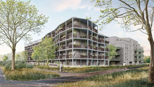 Um gleich vier Baukörper mit je fünf Geschossen wird Oberwagram wachsen, denn die Erste gemeinnützige Wohnungsgesellschaft (EGW) wird hier bis zum 4. Quartal 2027 ein neues Wohnquartier errichten.