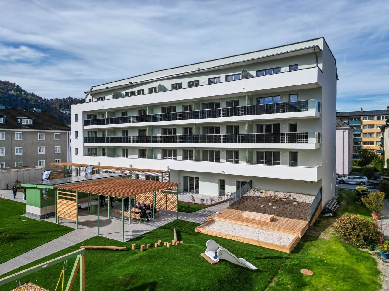 Nach rund 22 Monaten Bauzeit ist eine Wohnanlage der Wohnbau Bergland entstanden, die einen Zuwachs für zentrales, nachhaltiges Wohnen im Tennengau markiert. Auf dem Areal zweier abgerissener Altbauten wurden 23 Wohnungen realisiert, darunter zwölf 2-Zimmer-, zehn 3-Zimmer- und eine 4-Zimmer-Einheit mit Wohnflächen zwischen 50 m2 und 82 m2. Das Gebäude erstreckt sich über vier barrierefreie Geschosse und ist durch einen Personenaufzug erschlossen.