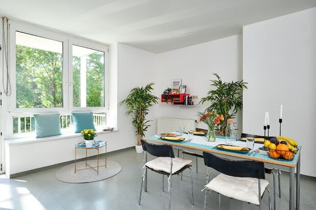 An der bewährten Wohnstruktur des Hauses ändert sich nichts: 46 Wohngemeinschaften für jeweils bis zu sechs Personen sowie fünf Kleinwohnungen mit je rund 66 m2 bieten Platz für rund 250 Studierende. Damit bleibt das Heim eine der größten Studierendenunterkünfte in Graz.