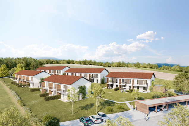 Die neuen Wohnungen bieten Wohnflächen zwischen 85 m² und 90 m² und verbinden modernen Wohnkomfort mit energieeffizienter Ausstattung. So verfügt jede Einheit über einen eigenen Garten oder einen Balkon und schafft dadurch zusätzlichen Freiraum im Grünen. Auch in technischer Hinsicht entspricht das Projekt den zeitgemäßen Standards. Eine Niedertemperatur-Fußbodenheizung sorgt für effiziente Wärmeversorgung, während Photovoltaikanlagen einen Teil des Strombedarfs abdecken und gleichzeitig den ökologischen Fußabdruck reduzieren.