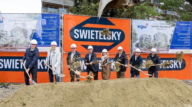 Klein aber fein verliefen die Feierlichkeiten zum Spatenstich der ersten gemeinnützigen Wohnungsgesellschaft (EGW) am letzten Baufeld im „Village im Dritten“. Der offizielle Startschuss fiel im Beisein von Bezirksvorsteher Erich Hohenberger, den Architekten, Planern sowie der Swietelsky AG.