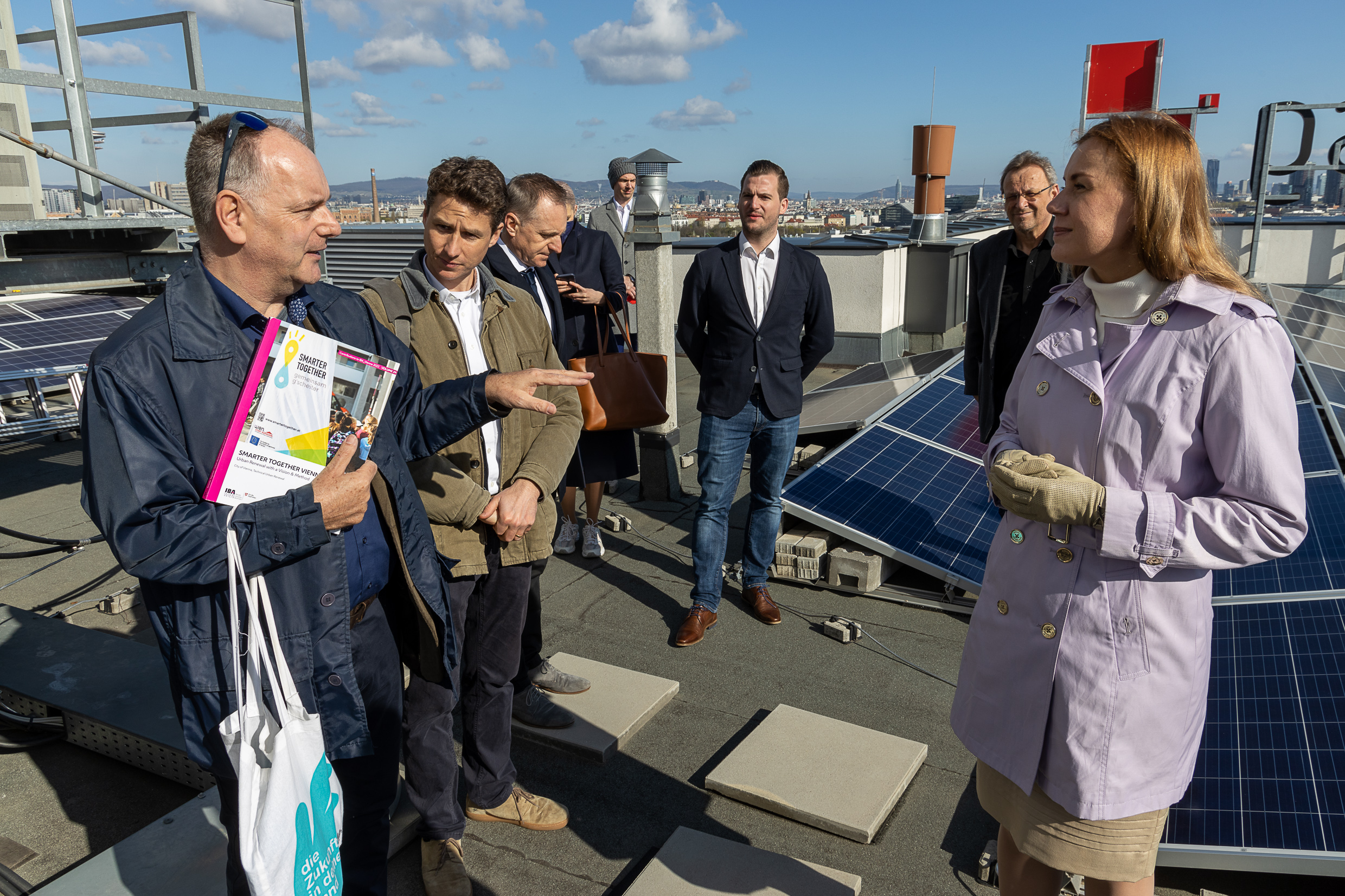 Das Sanierungsprojekt der BWSG in der Hauffgasse wurde kürzlich nicht nur mit dem ETHOUSE Award 2022 ausgezeichnet, es war auch Schauplatz für hohen Besuch. EU-Energiekommissarin Kadri Simson machte sich in Simmering ein Bild über das Objekt. Die Sanierung ist Teil des Projekts Smarter Together – Gemeinsam g’scheiter, welches im Rahmen des EU-Forschungsprogramms Horizont 2020 gefördert wurde. Wien, München und Lyon setzen in ausgewählten Stadtteilen Impulse für eine positive gesellschaftliche Dynamik und eine nachhaltige Stadtentwicklung. Im Fokus stehen Maßnahmen für Klimaschutz und urbane Lebensqualität – wie zum Beispiel integrierte Gebäudesanierungen, klimaschonende Energiesysteme und E-Mobilität.