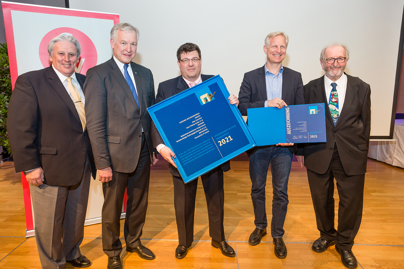 Auszeichnung Kategorie Geschoßwohnbau NÖ Friedenswerk (Lilienfeld): Präsident Alfred Graf, LR Martin Eichtinger, Direktor Christoph Scharinger (NÖ Friedenswerk), Architekt Johannes Pesendorfer, Vizepräsident Wilhelm Gelb © Fotograf Werner Jäger