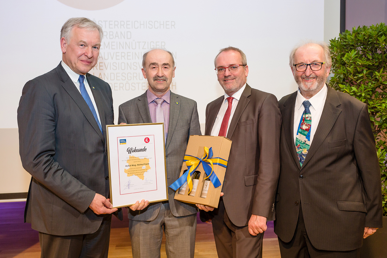 Ehrung von Helmut Frank mit Landesrat Martin Eichtinger, Vizepräsident Wilhelm Gelb und Vorstandsdirektor des WAVs Manfred Damberger © Fotograf Werner Jäger