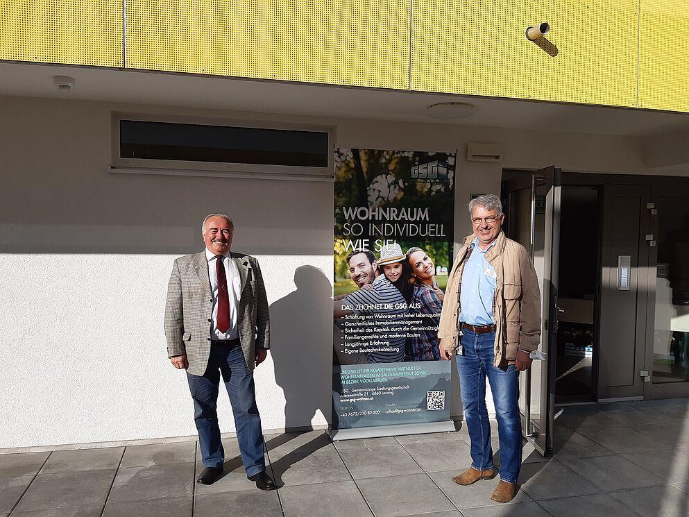 Bürgermeister Dieter Helms und Hausverwalter Klaus Ganglmair bei der Übergabe der neuen Wohnungen © GSG